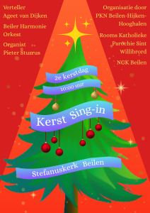De NGK, RK en PG Beilen-Hijken-Hooghalen nodigen u uit voor de ‘Kerst Sing-in’ op 2e Kerstdag in de Stefanuskerk in Beilen om 10.00 uur. De Nederlands Gereformeerde kerk van Beilen, Rooms Katholieke kerk en de Protestantse gemeente Beilen-Hijken-Hooghalen nodigen u allen uit om mee te zingen in de sfeervolle dorpskerk van Beilen met bekende oude
